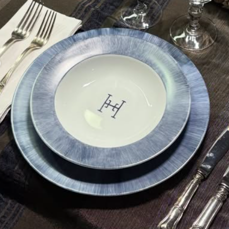 Vajilla iniciales con borde azul