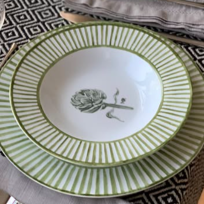 Vajilla alcachofas con borde de rayas verdes